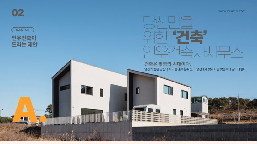 광주 인우건축사사무소에서 진행한 프로젝트중 주거용 프로젝트를 소개하는 카테고리입니다. 인우건축사사무소는 주택설계에 특화되어있습니다.